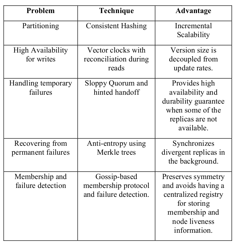 Dynamo 基于一些业内熟知的技术实现了可扩展性和高可用性: