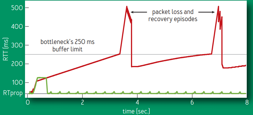 今天,TCP 那些基于丢包的拥塞控制(loss-based congestion control) —— 即使是目前其中最好的 CUBIC11 —— 是导致这些问题的主要原因。