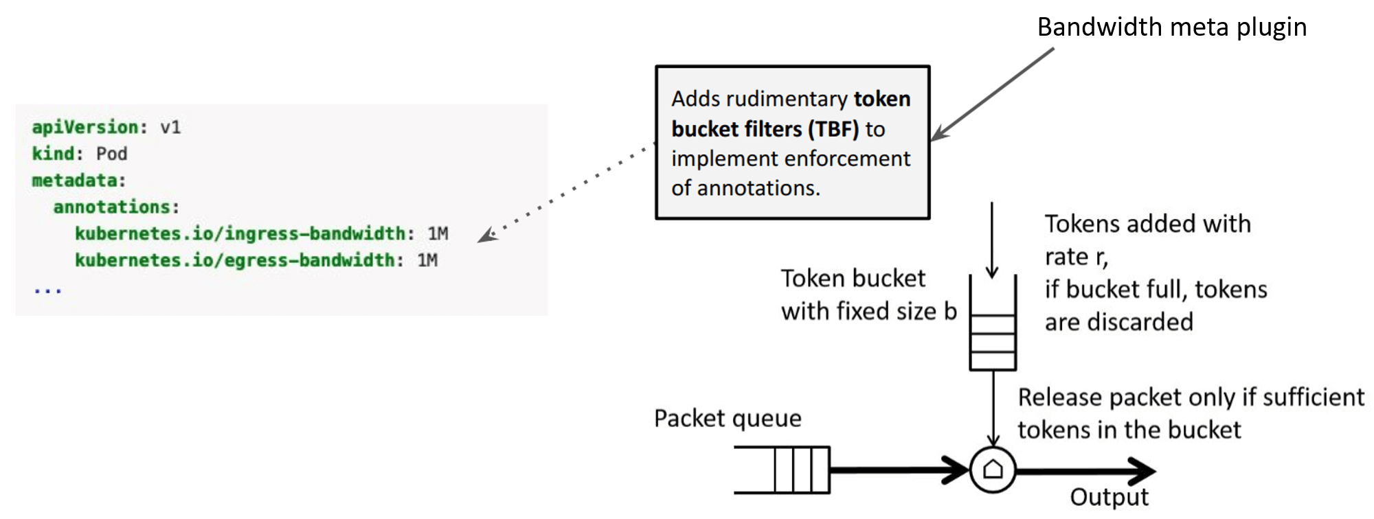 Fig. Bandwidth meta plugin 解析 pod annotation,并通过 TC TBF 实现限速
