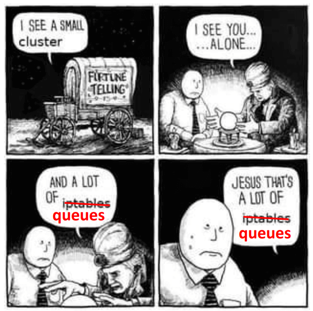 - 延迟显著增加:每个 pod 原来只需要 2 个网络设备,现在需要 3 个,增加了大量 queueing 逻辑。