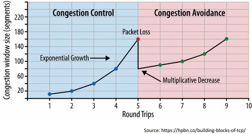 - 队列长度(queue length)和接收窗口(receive window)决定了传输中的数据速率(in-flight rate)