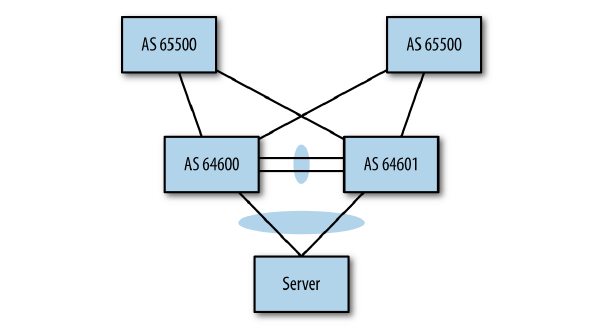路由器和服务器之间也支持 BGP unnumbered,和第四章介绍的路由器之间的 unnumbered 类似。这种方式的拓扑如图 6-2: