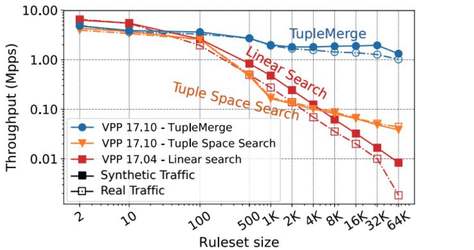 另外,我们最近也在看当前主流的包分类算法有哪些,例如 TupleMerge, 下面是论文中的截图: