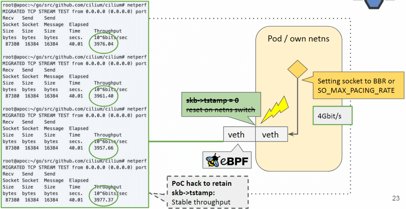 - TCP pacing for Pods from initns