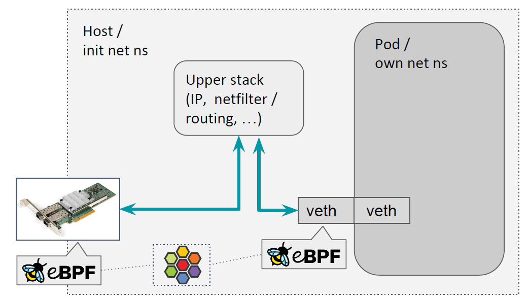入向流量,会有快速 netns 切换,从宿主机 netns 直接进入容器的 netns。