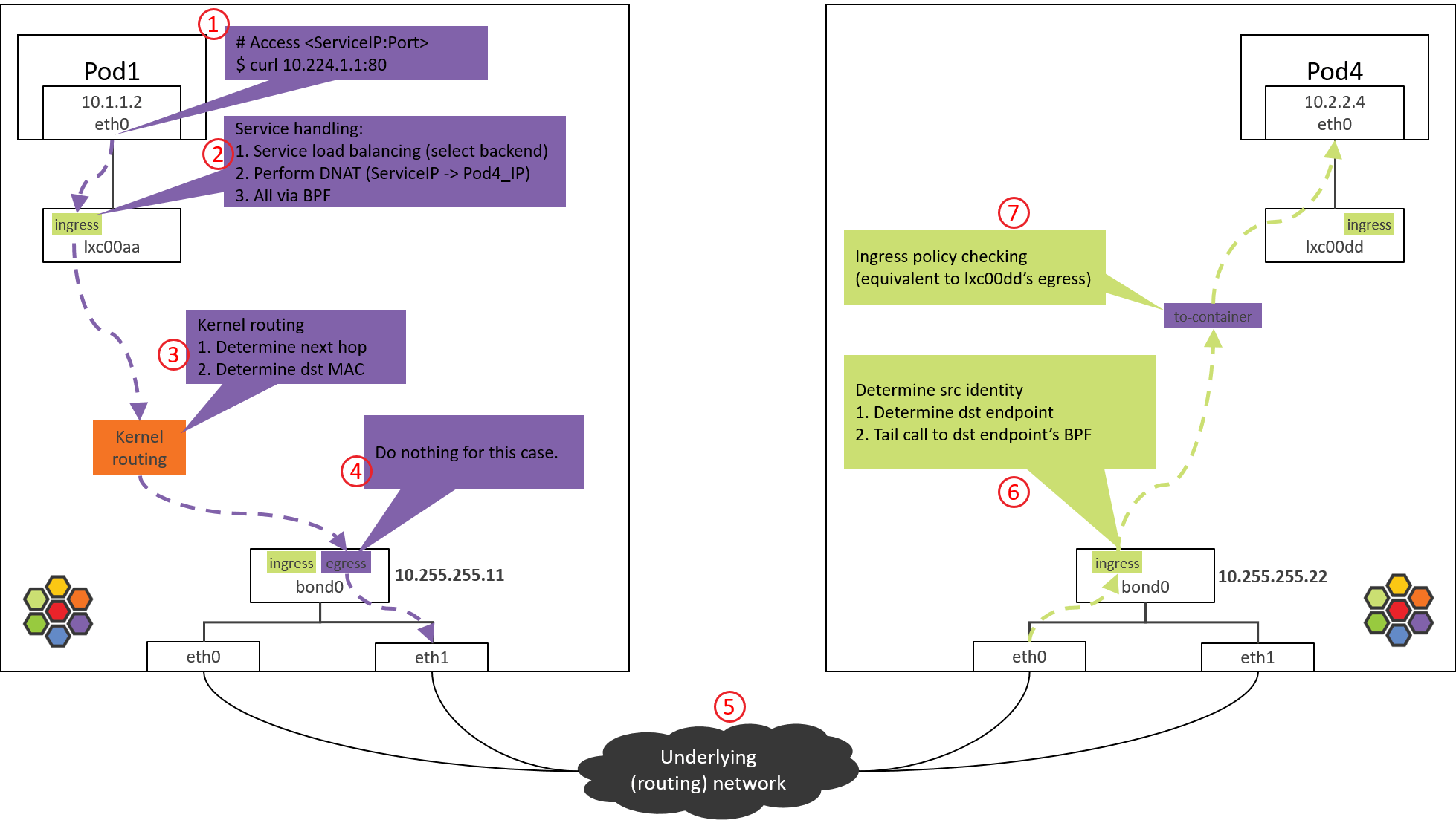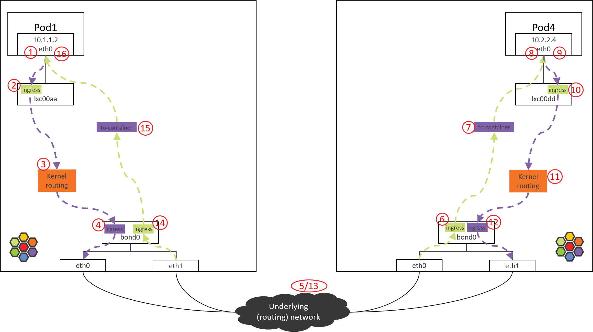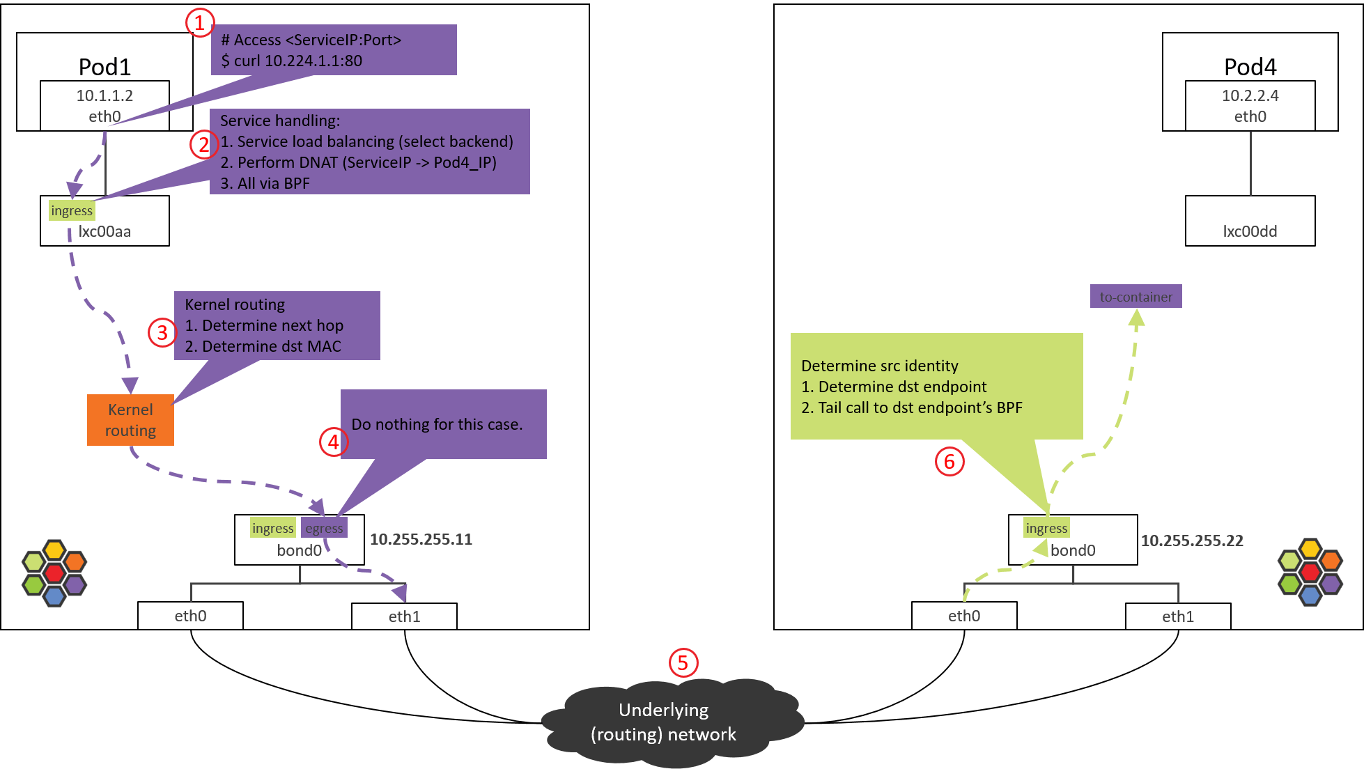 Forwarding path in Cilium varies according to the different cross-host networking solutions you choose, we assume in this post that: