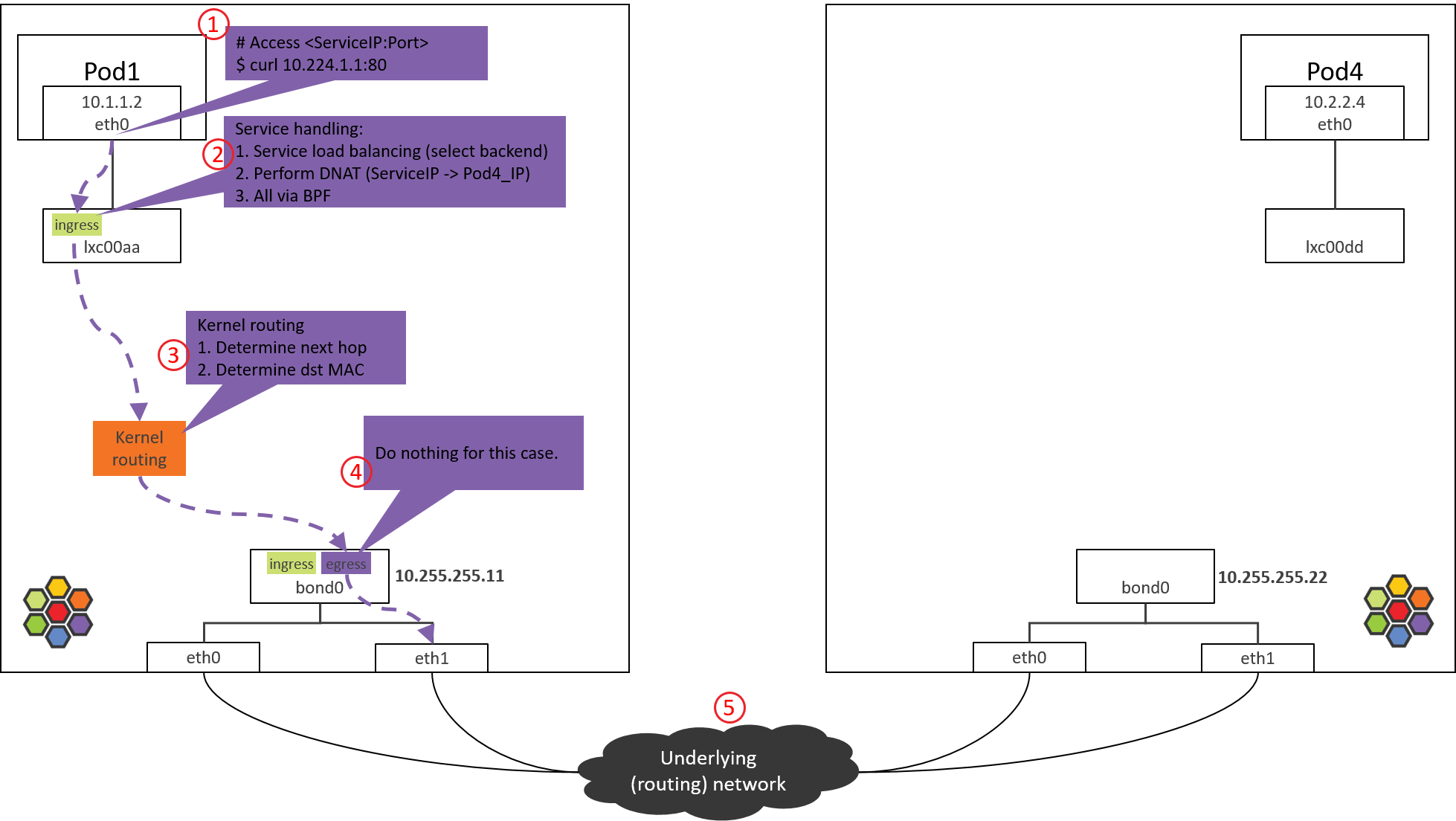 Step 2: POD1 lxc device: POD1 egress BPF processing