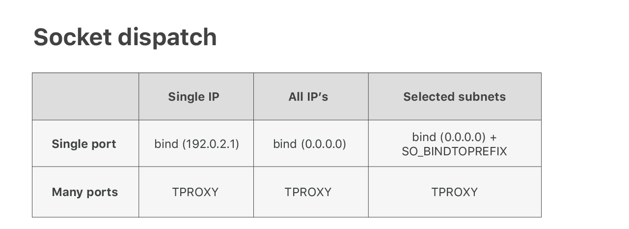这种配置可以工作,但我们不想要那些额外的防火墙规则。我们正在尝试解决这个问题 —— 事实上是扩展 socket dispatch 逻辑。你猜对了 —— 我们想基于 eBPF 来做。敬请 期待我们的补丁。