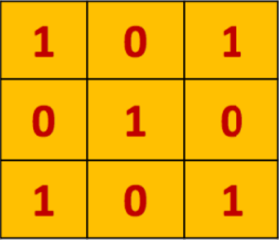 每个图像都是像素值组成的矩阵。考虑一个 5x5 的图像,其像素值只有 0 和 1(灰度图像的像素值范围为 0 到 255,这里我们进一步简化,像素值只有 0 和 1):