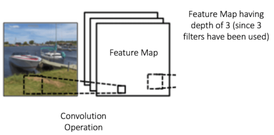 在下图所示的网络中,我们使用三个不同的 filter 对原始图像执行卷积,从而生成三个不同的特征图。 可以将这三个特征图视为三个自下向上堆叠(stacking)在一起的二维矩阵, 这也是为什么成它为特征图的“深度”。