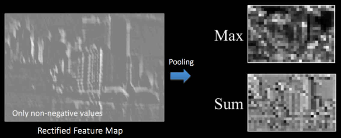 Average Pooling 和 sum 类似,只不过取的是平均值和累加和。 实际中,Max Pooling 效果更好一些。下面是一个效果对比: