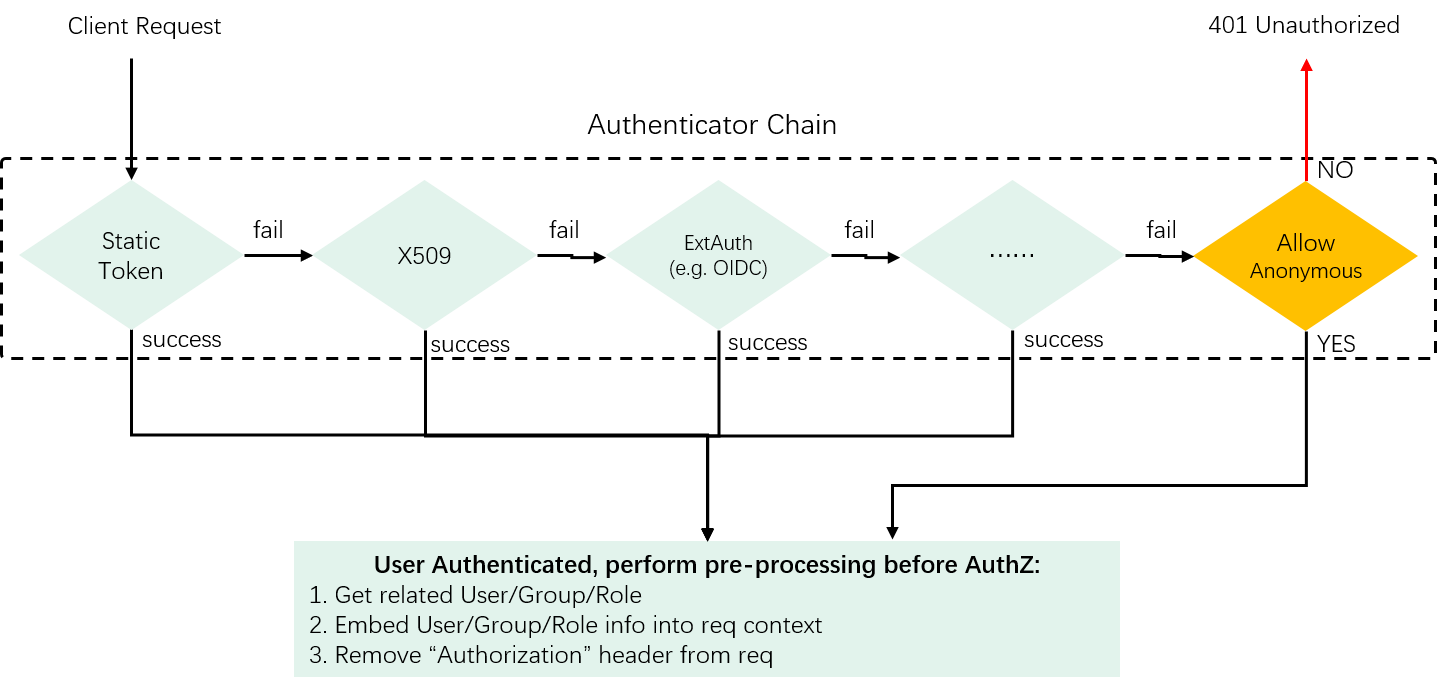 AuthN and AuthZ are tightly related, refer to our later post Cracking Kubernetes RABC Authorization Model for the AuthZ part.