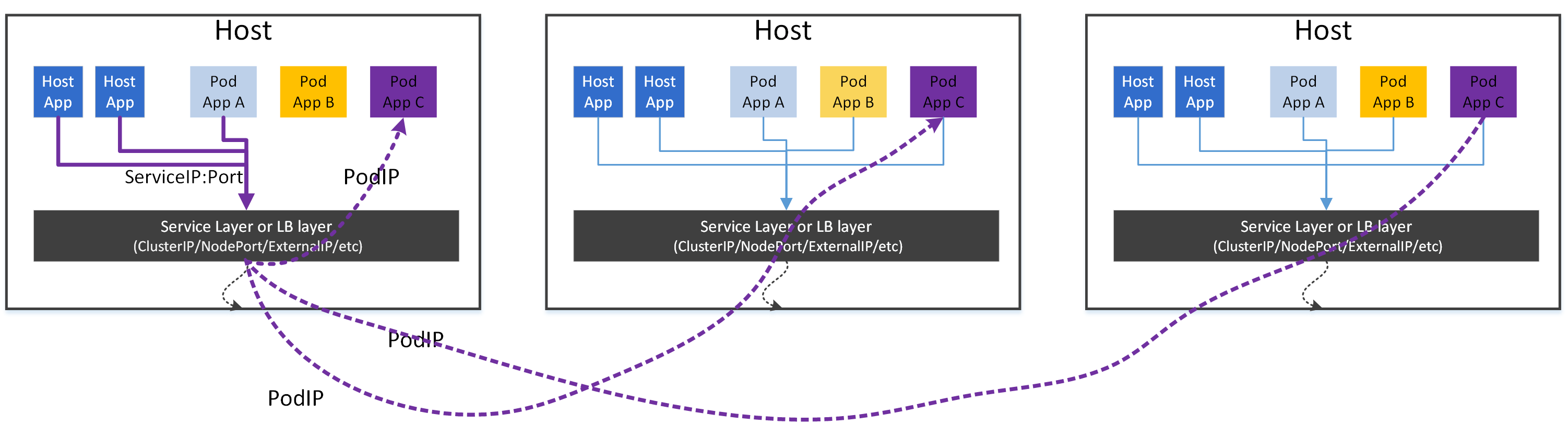 - Each pod can access an application directly by its VIP.