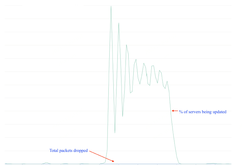 先来看发布过程对业务流量的扰动程度。下图是我们的生产数据中心某次发布的统计,图中有两条线: