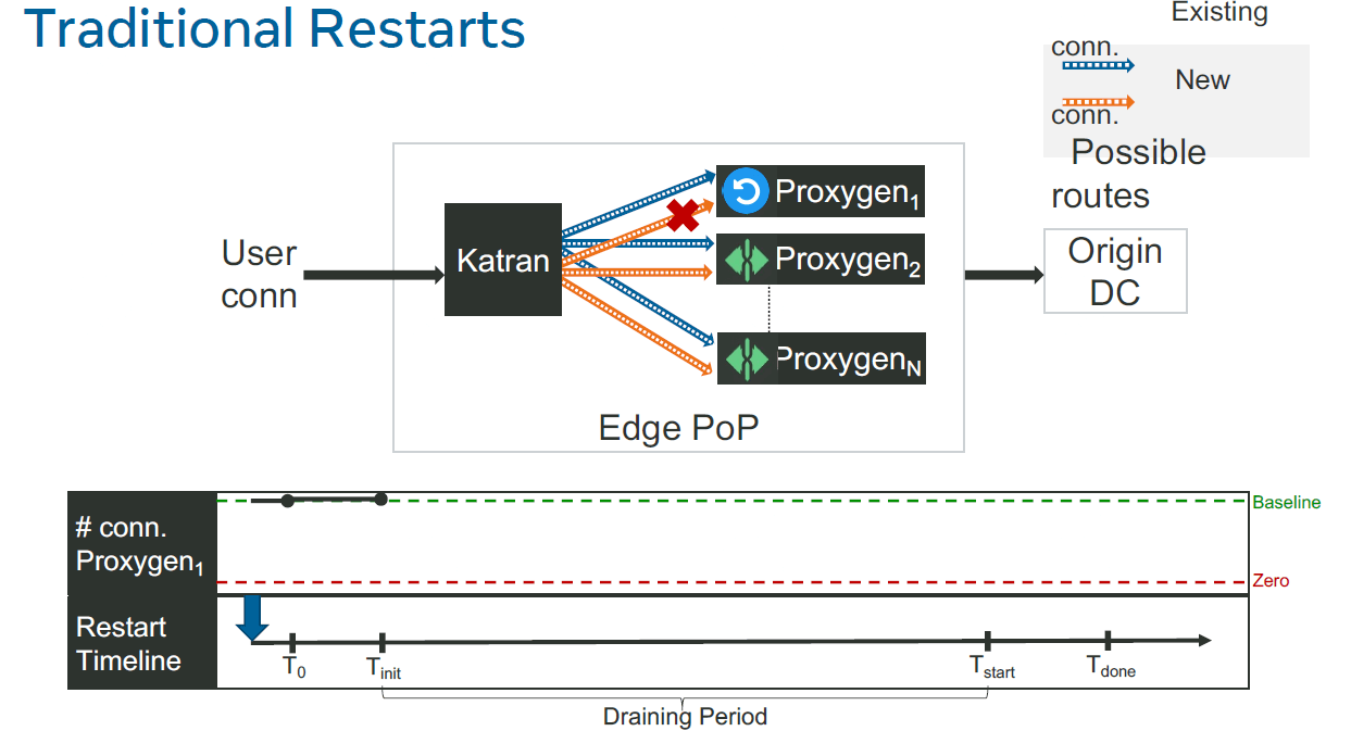 本节介绍了我们的基于 BPF_PROG_TYPE_SK_REUSEPORT 和 BPF_MAP_TYPE_REUSEPORT_SOCKARRAY 实现的新一代发布技术,它能实现主机内新老实例流量的无损切换,优点: