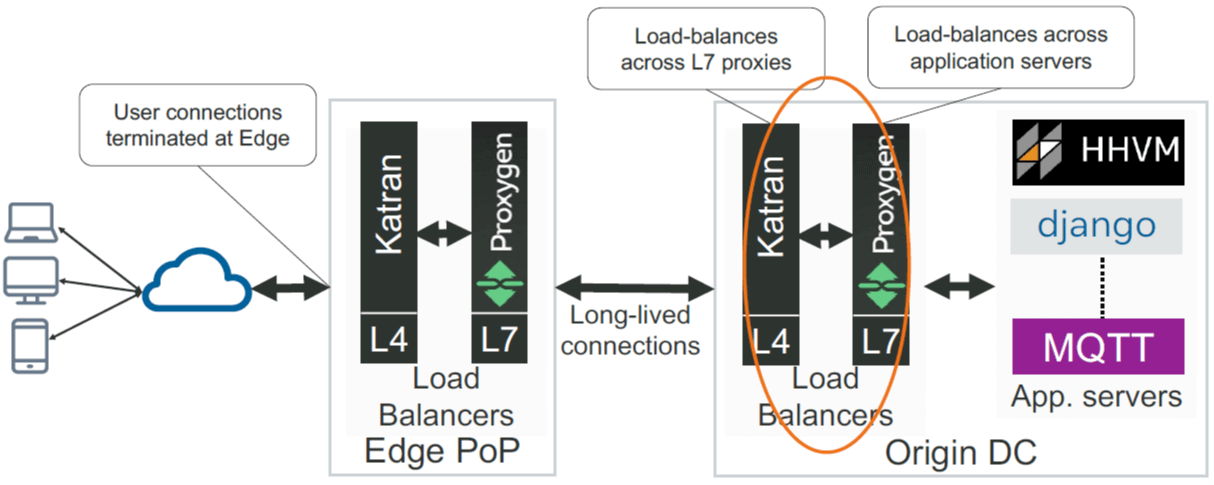 - Origin DC LB 再将 L7 流量路由到最终的应用,例如 HHVM 服务。