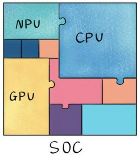 现代手机芯片不再是单功能处理器,而是集成了多种芯片的一个 片上系统(SoC), 华为 NPU 芯片就集成到麒麟手机芯片内部,随着华为 Mate 系列高端手机迭代。