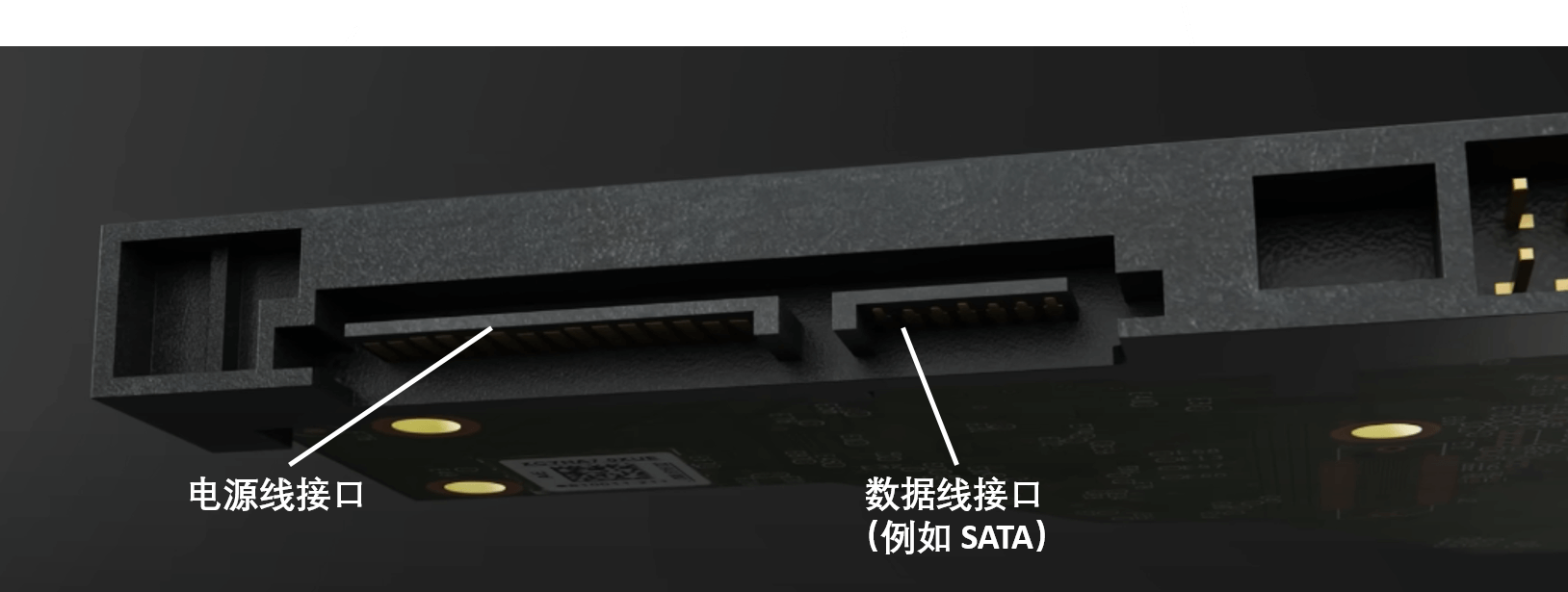 - 数据接口:例如 SATA 接口,用于和电脑主板相连传输数据;