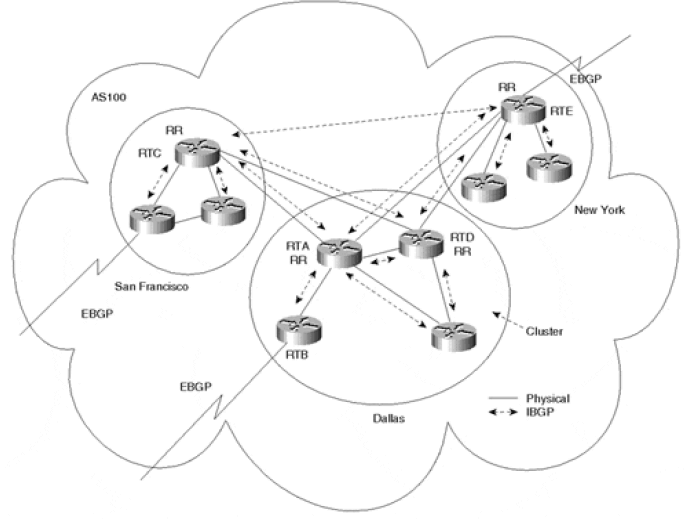 RR 拓扑主要取决于物理网络拓扑,事实上每个路由器都可以配置成 RR。