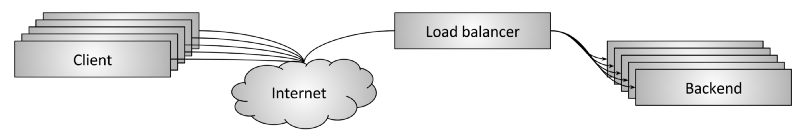 图 1 是网络负载均衡的高层架构图。若干客户端正在访问若干后端服务,它们中间是一个 负载均衡器;从高层看,负载均衡器完成以下功能: