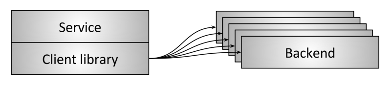 有人可能会说,当负载均衡内嵌到客户端库作为库的一部分时,负载均衡器并不是一个代理。 我觉得这种区分只是给本已令人困惑的主题又增加了不必要的复杂性。 因此本文后面讨论负载均衡器拓扑的类型时,将把嵌入式负载均衡器拓扑作为一种特殊的代理; 应用通过内嵌的库进行代理转发,这个库提供的抽象和一个位于应用进程之外的负载均衡器是一样的。