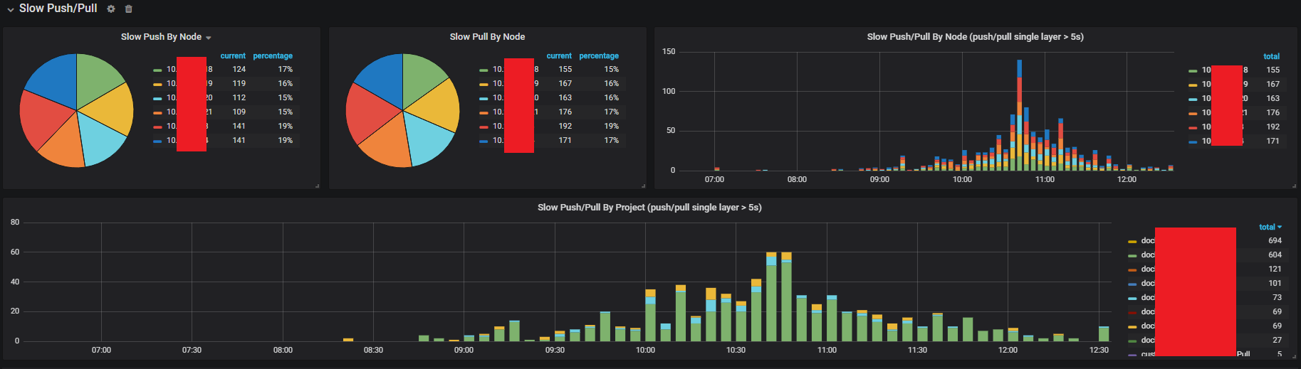 We run a customized image service in our private cloud, which initially based on vmware/harbor 0.4.5, and developed internally since then. A public presentation PDF (in Chinease) has mentioned part of this[2]. This article, however, is not about the design and implementation of the image service (which needs another post), but the monitoring system along with it.