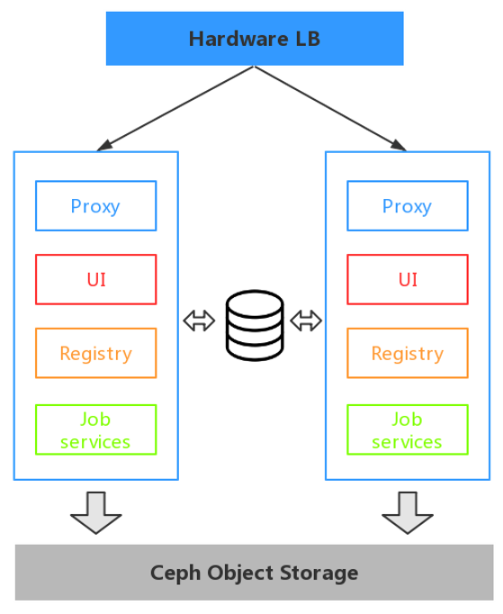 - nginx - L7 proxy between API/UI, jobservice, registry
