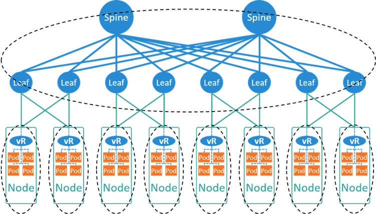 Fig 4-5. Typical network solution for container platforms, with Spine-Leaf