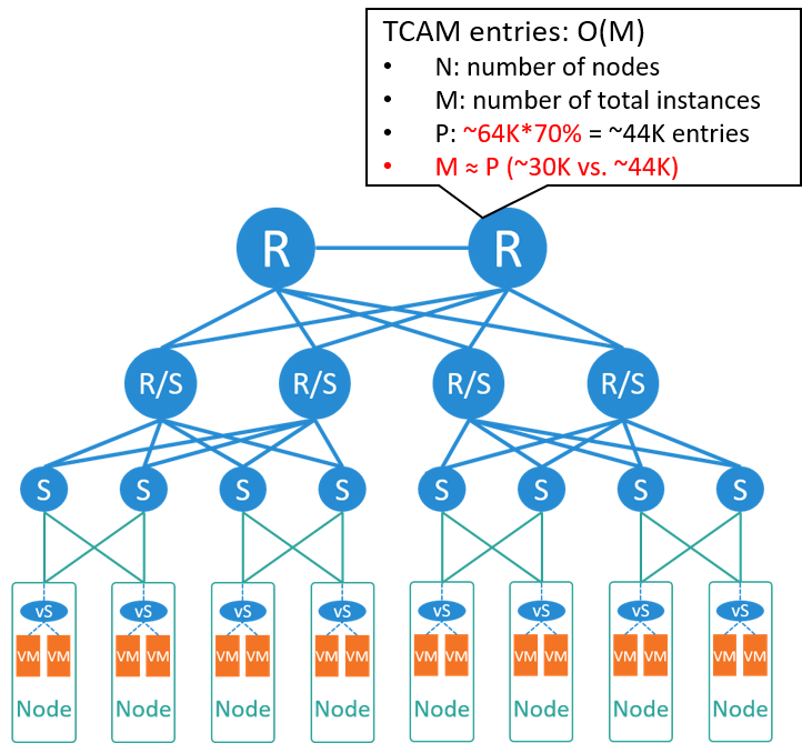 那可以算出总共有 30k 虚拟机,需要占用核心交换机 ~30K 表项。