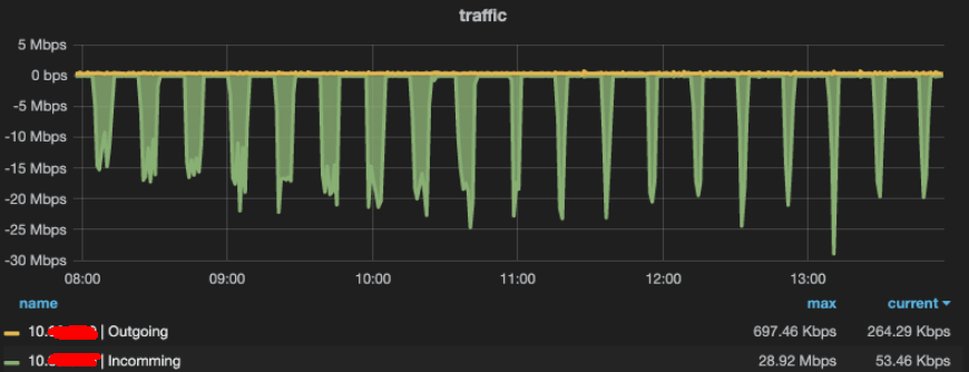 An internal user reported that they noticed some of their instances (docker containers) periodically get a relatively large sceptical ingress traffic - even if their instance is not serving, shown as below: