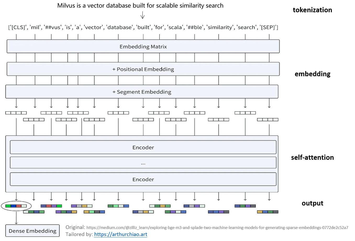 - 最终输出是一个 dense vector,本质上是对语义的压缩;