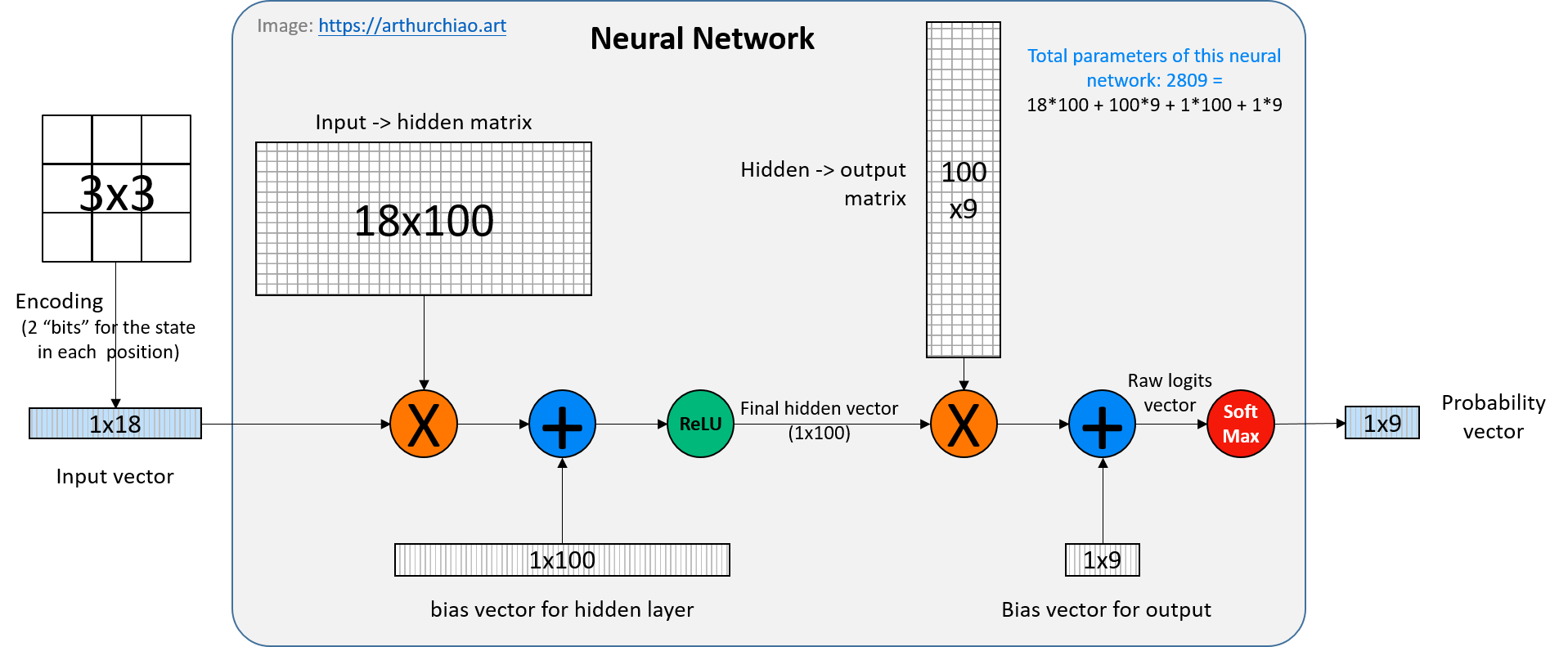 下图就是本文用来训练下井字棋的神经网络,