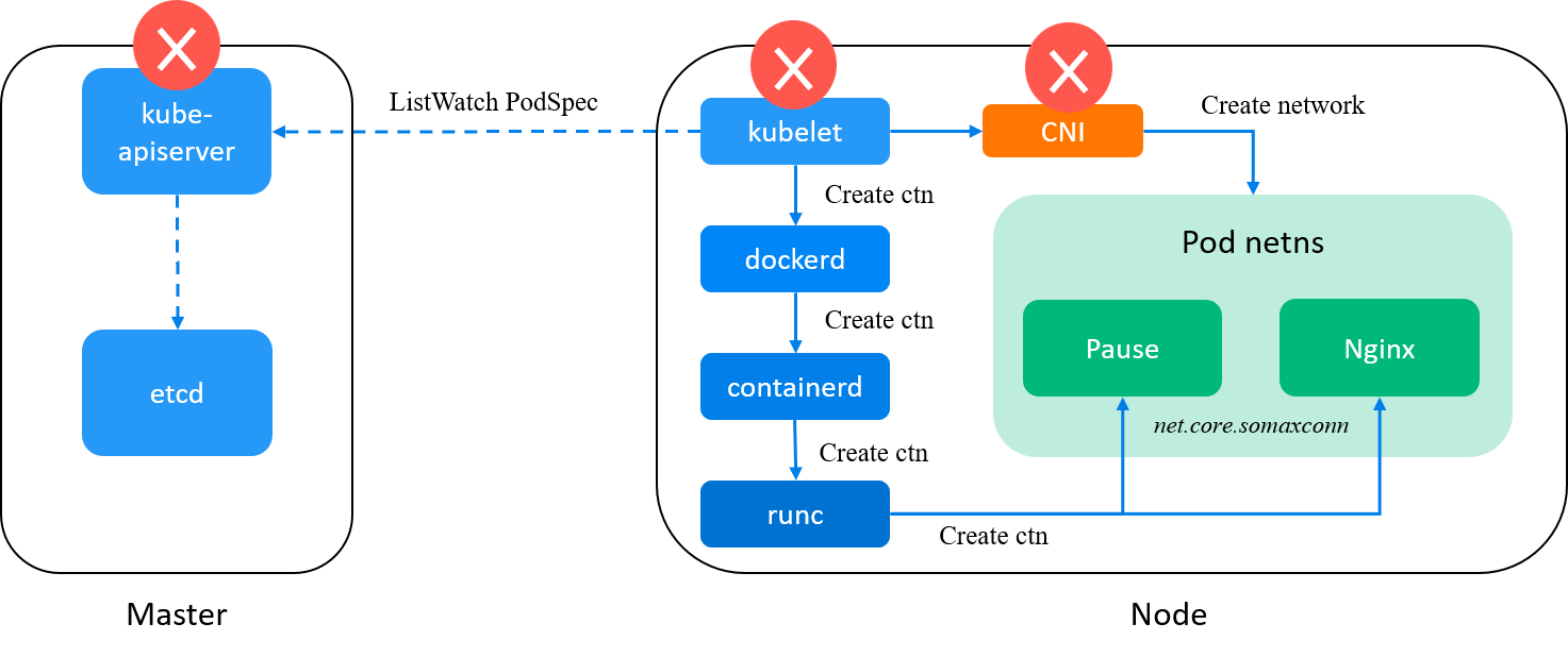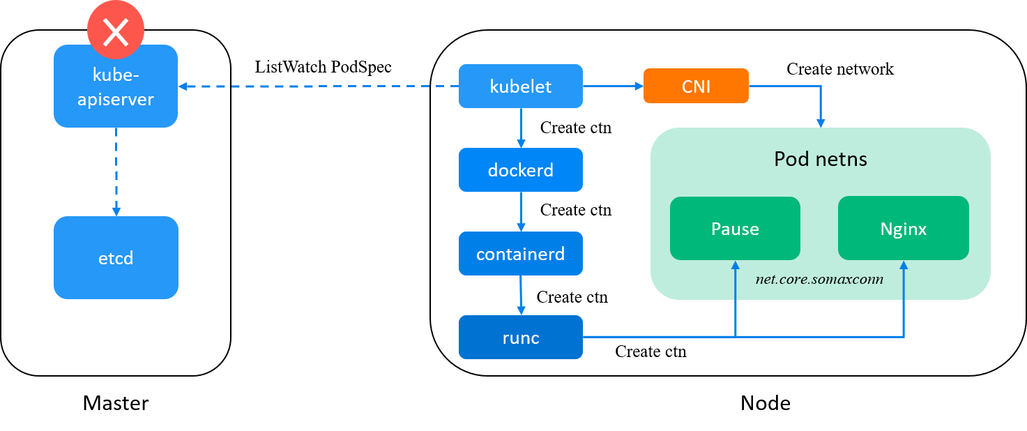 SOMAXCONN, initialized during container’s network namespace (netns) creation, regardless of the node setting (effective only indefaultnetns). For kernel< 5.4, the constant is 128; for kernel5.4+, it’s 4096. -