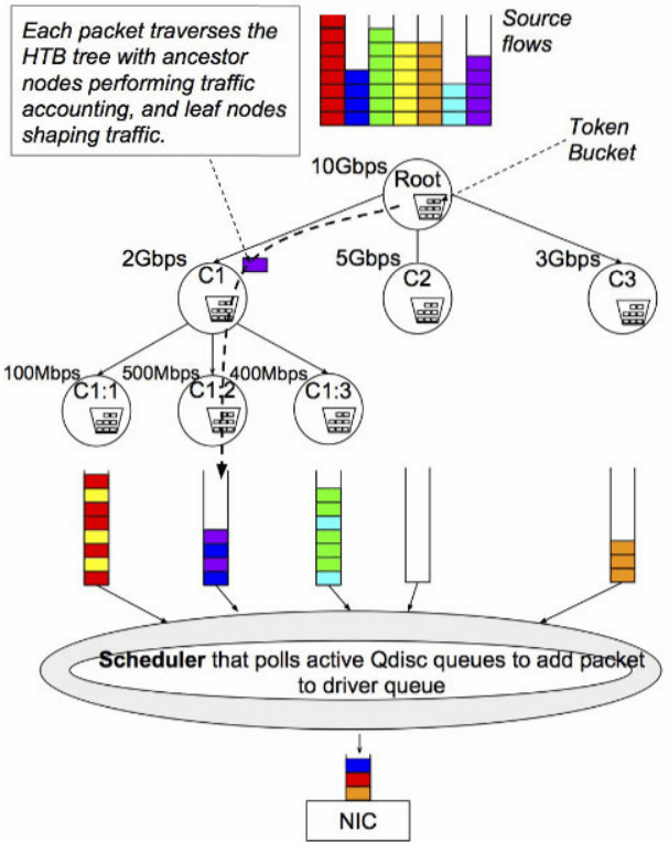 Fig. 通过多个 token bucket queue 实现一个 shaper