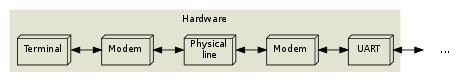 前面图中的物理线路当然也可以是一个长距离电话线路: