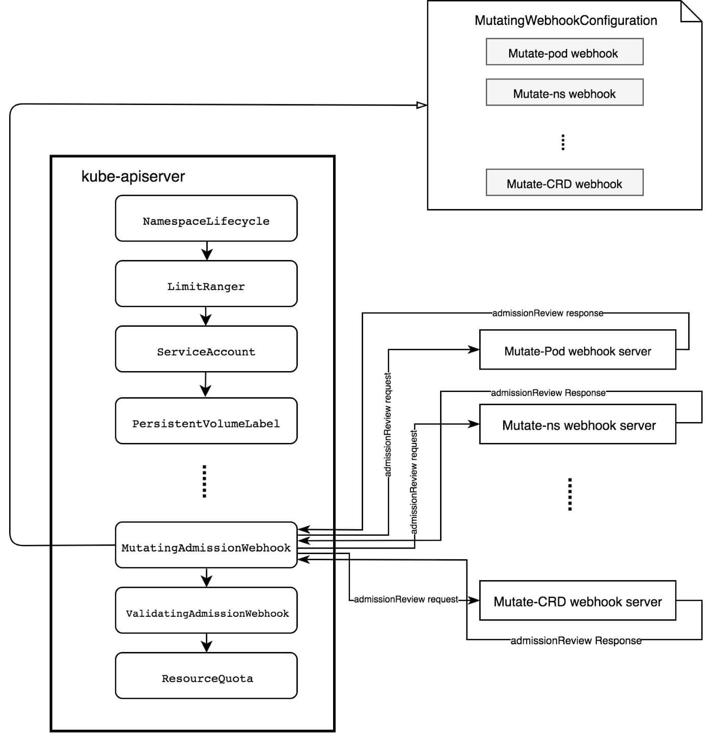 至此,认证和鉴权都通过了。但这还没结束,K8s 中的其它组件还需要对请求进行检查, 其中就包括 admission controllers。